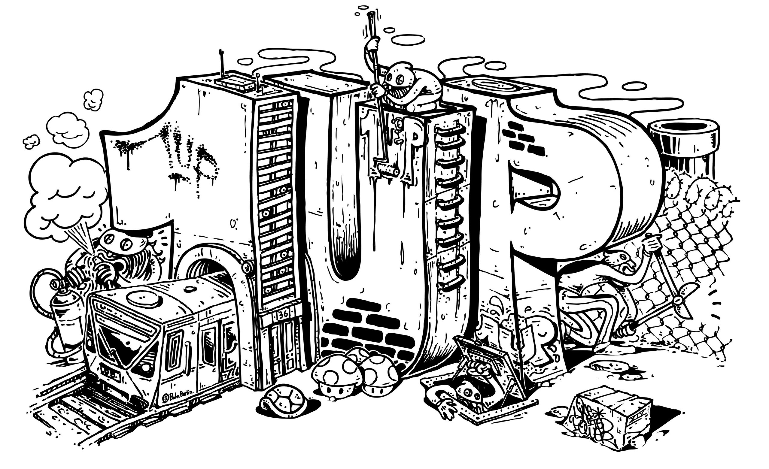 The 1UP “One United Power” crew is most famous for their worldwide graffiti actions. Street-bombings in broad daylight, whole cars in running traffic, rooftops at dizzying heights. There is a whole bunch of international artists in the crew, containing both men and women. It´s a family where “strength in unity” is the rule: One Crew, One Love, One Power.