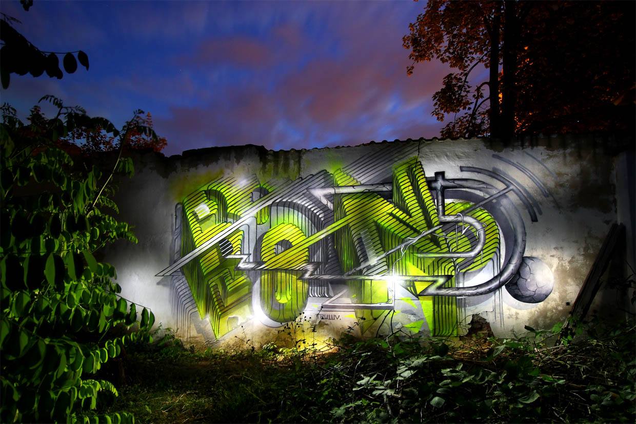 Bond Truluv is a graffiti artist who lives and works in Leipzig, Germany. He had his first experiences with street art in the beginning of the 2000s. Always searching for new compositions and styles, Bond Truluv experiments with different stylistic directions and techniques, though it is the bright colors he uses that create such memorable work.