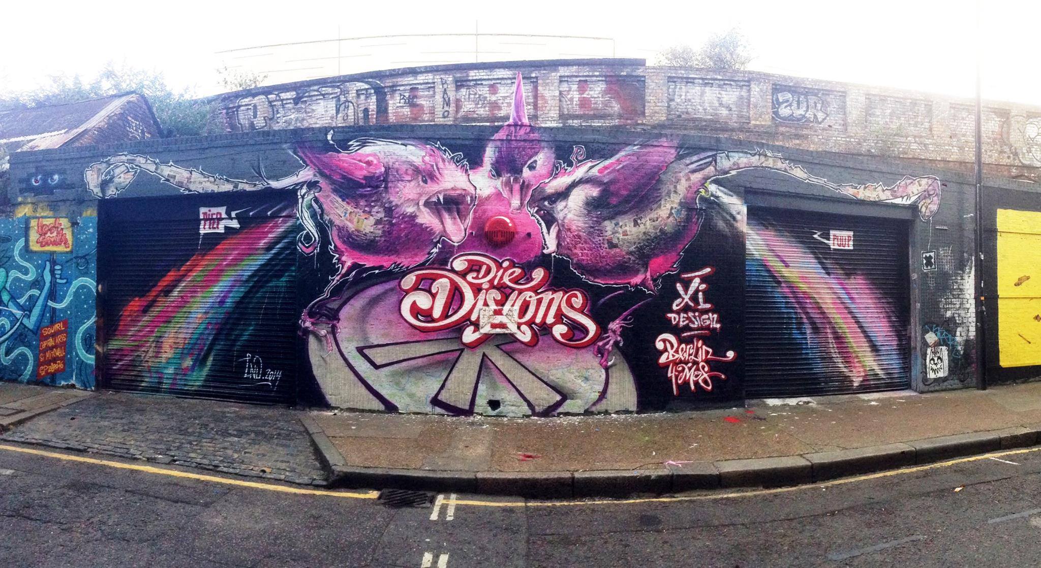 Besides photorealistic themes and detailed portrayals, they also create stunning illustrations. The credo of the crew is “the bigger and crazier the wall and the theme, the better. If they are not spraying in Berlin, they start tours through the whole world to create murals with other artists and show the world how fresh street art from Berlin is.