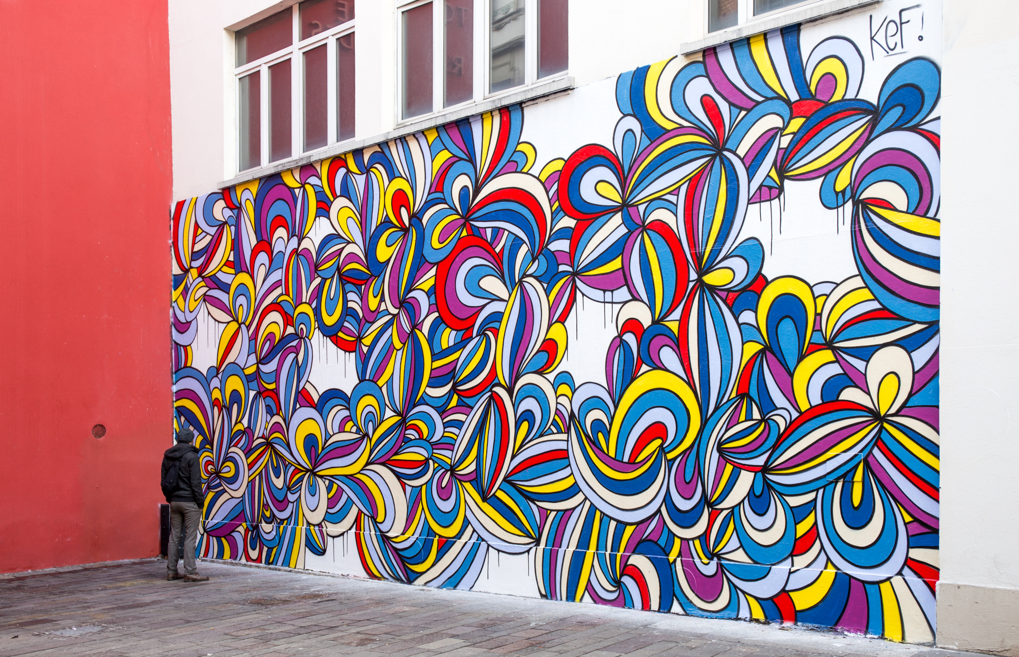 Simon Röhlen (KEF!) was born in Aachen and raised in a small West German town called Übach-Palenberg. He moved to London in 2013 after seeing the vibrant street art scene and feeling that there was a gap that his style could fill. In 2015, he decided to move to Berlin, attracted by its alternative lifestyle. The intricate style of KEF!'s work can be described as abstract graffiti. He often talks about the peace and harmony within the lines he creates and that the mission of his current life is to spread these two aspects. As an artist he works instinctively, taking inspiration from Buddhist teachings and nature. For KEF!, nature contains the utmost beauty on this planet.