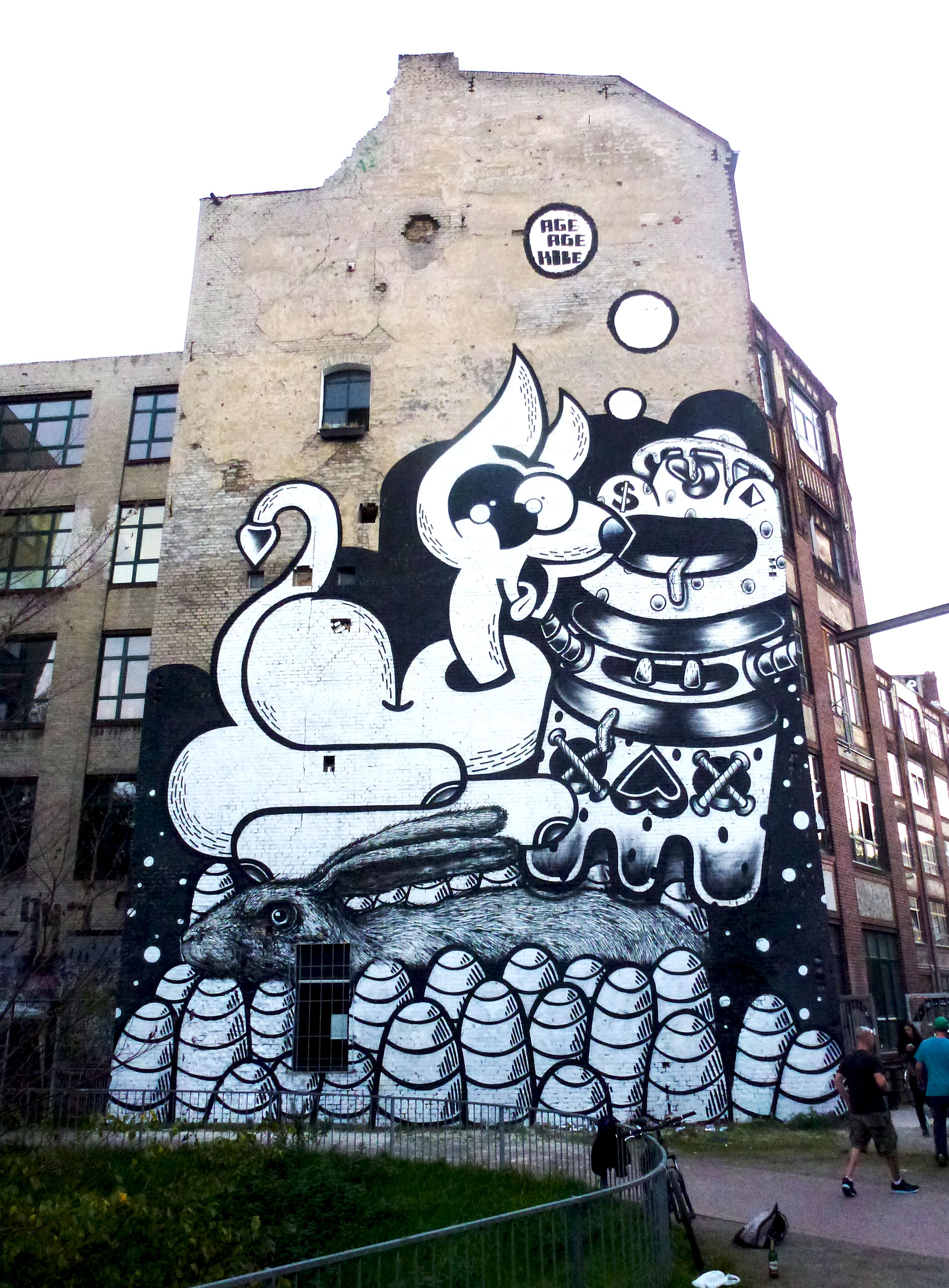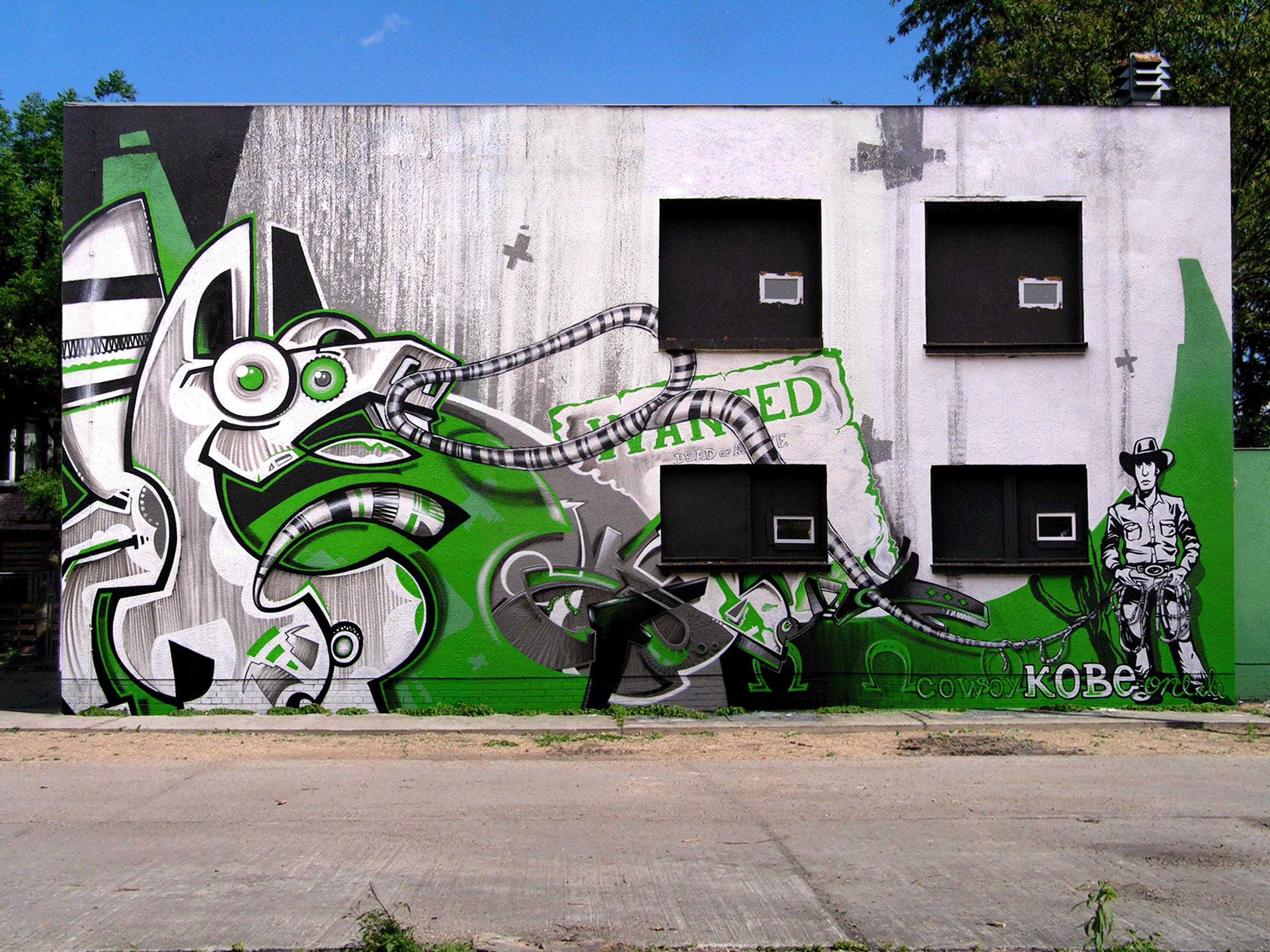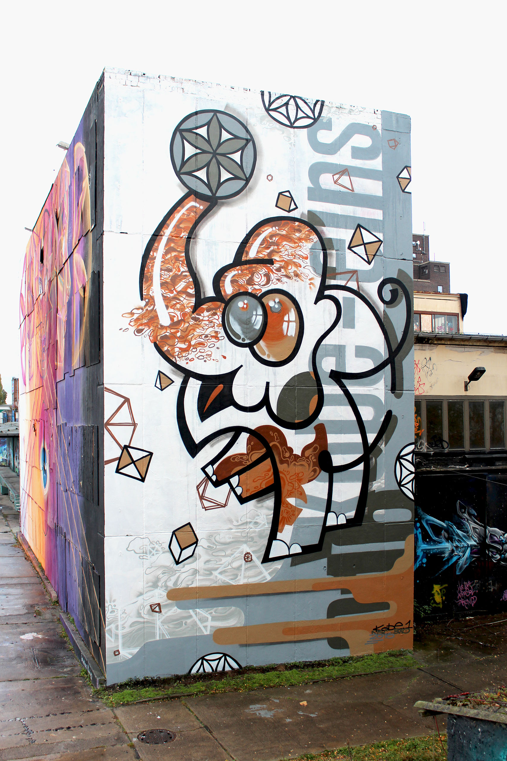 Roger Berndt (aka Kobe Eins) was born in 1980 in Berlin. His style is called surrealistic comic. The statement his composition makes is the genesis of existence and the human being’s quest to find its own dimension.