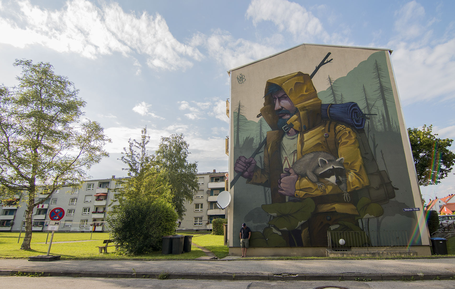Mr. Woodland grew up and still lives in Erding, a small town close to Munich. He sprayed his first graffiti in 1993 at the age of 12. He only works with characters and describes his style as a combination of illustration, surrealism and graphic elements with a focus on high and large walls.