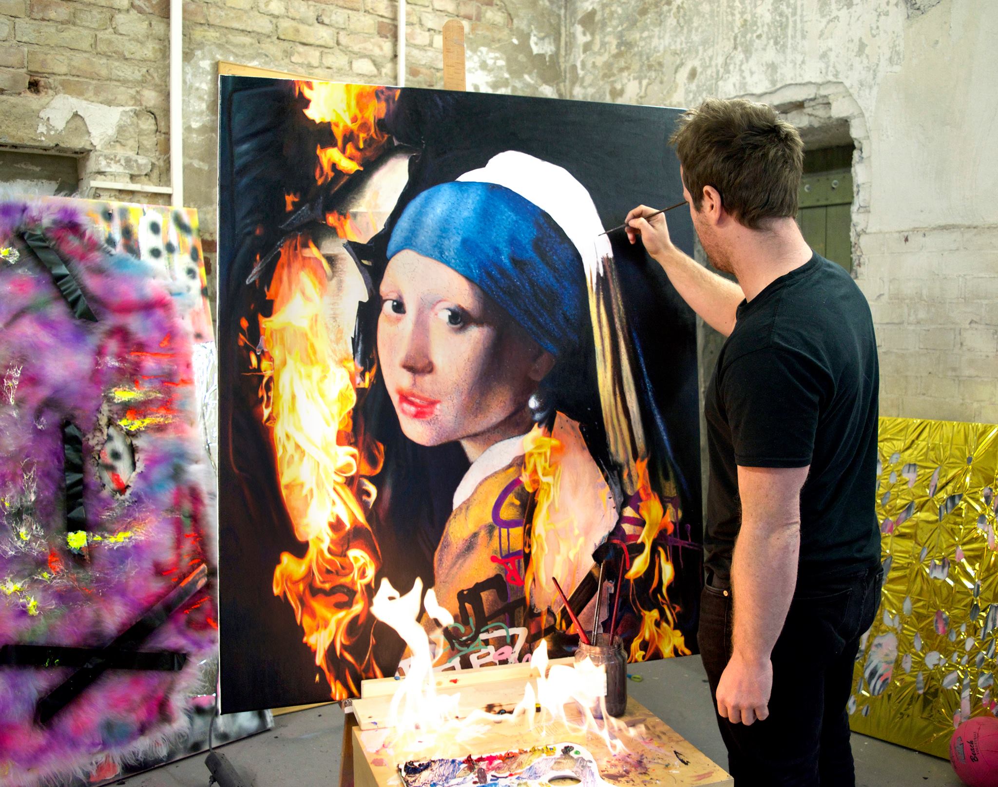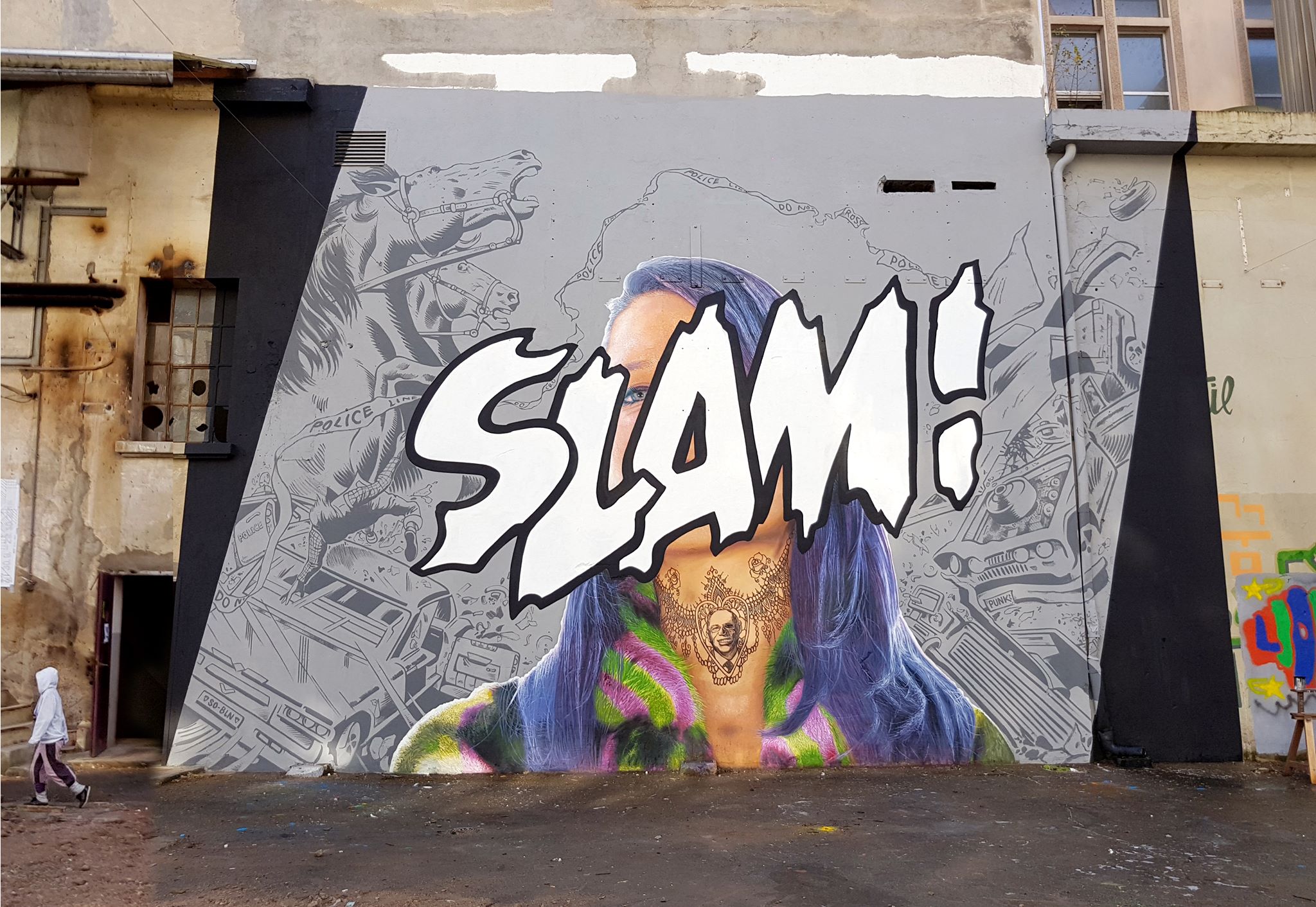 These two first met at an abandoned spy station in Berlin and quickly became friends. Even though they come from two different countries separated by a vast distance, they grew up with nearly identical cultural influences. Products of an ever spreading, homogenized, cultural malaise. It is this dulling pop culture that they reference in their work. The blurring of reality and commerce. Always in focus is the one weapon that we have against the power structures that wish to control and dominate us. Paint.