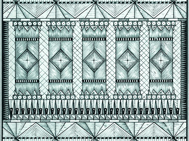 His artworks address the relation between architecture and filigree ornaments, which can be seen in his prints and murals.