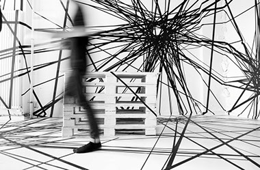 Tape That is a collective of six artists that was founded in 2011 and is based in Berlin. Their artistic roots can be predominantly found in contemporary urban art with influences from street art, graffiti and design. The works are essentially created out of adhesive tape which every member discovered independently from each other in their creative processes. Inspired by the possibility of creating something new out of an everyday object, they use tape to create complex and intricate structures or colorful tape and light installations as well as minimalistic black and white murals and room-installations. Their works can be found in a variety of places, such as underground nightclubs, abandoned buildings, showrooms and galleries. Though based in Berlin, Tape That is active all around the globe with recent and ongoing projects in Peru, Egypt, Spain, Qatar, Bulgaria, Cambodia, Vietnam, China, Luxembourg, Austria, Sweden, the US and the UK.