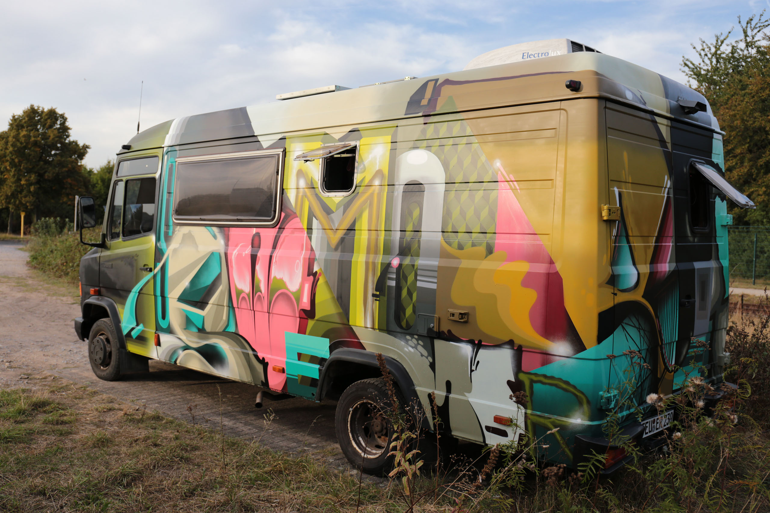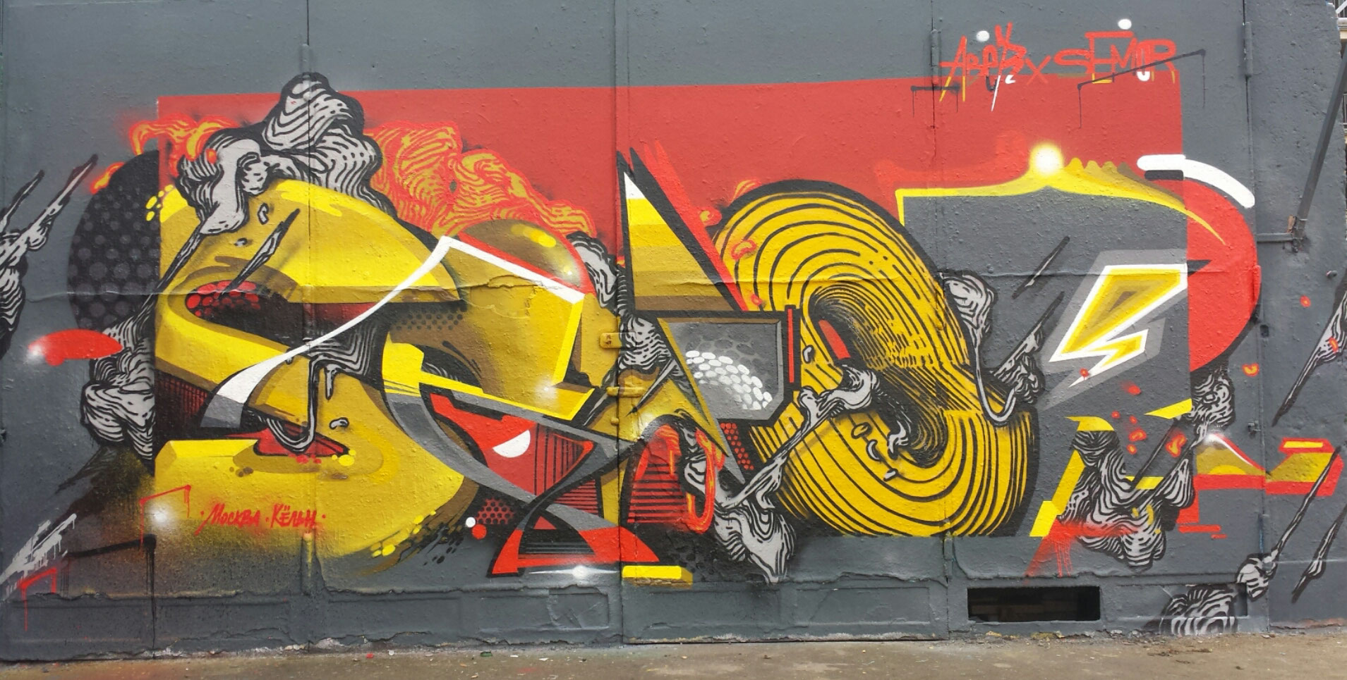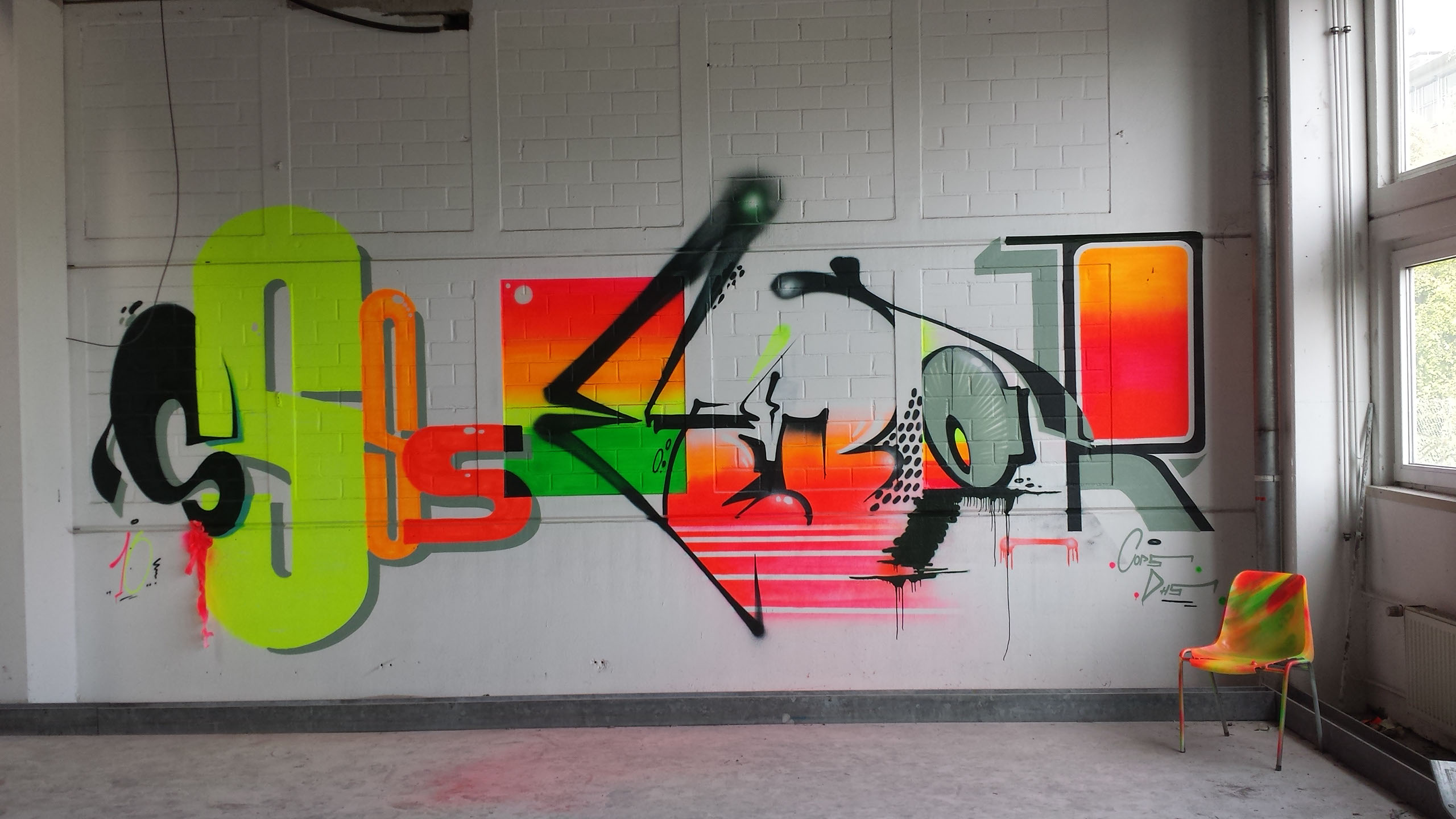 “Semor” lives and works in Cologne. His passion for style writing began in 1993 and was so strong that he could not stop it. Nowadays his style differs from classic graffiti. His artworks are extensive, graphical, spirited and also contain abstract forms and colorations.