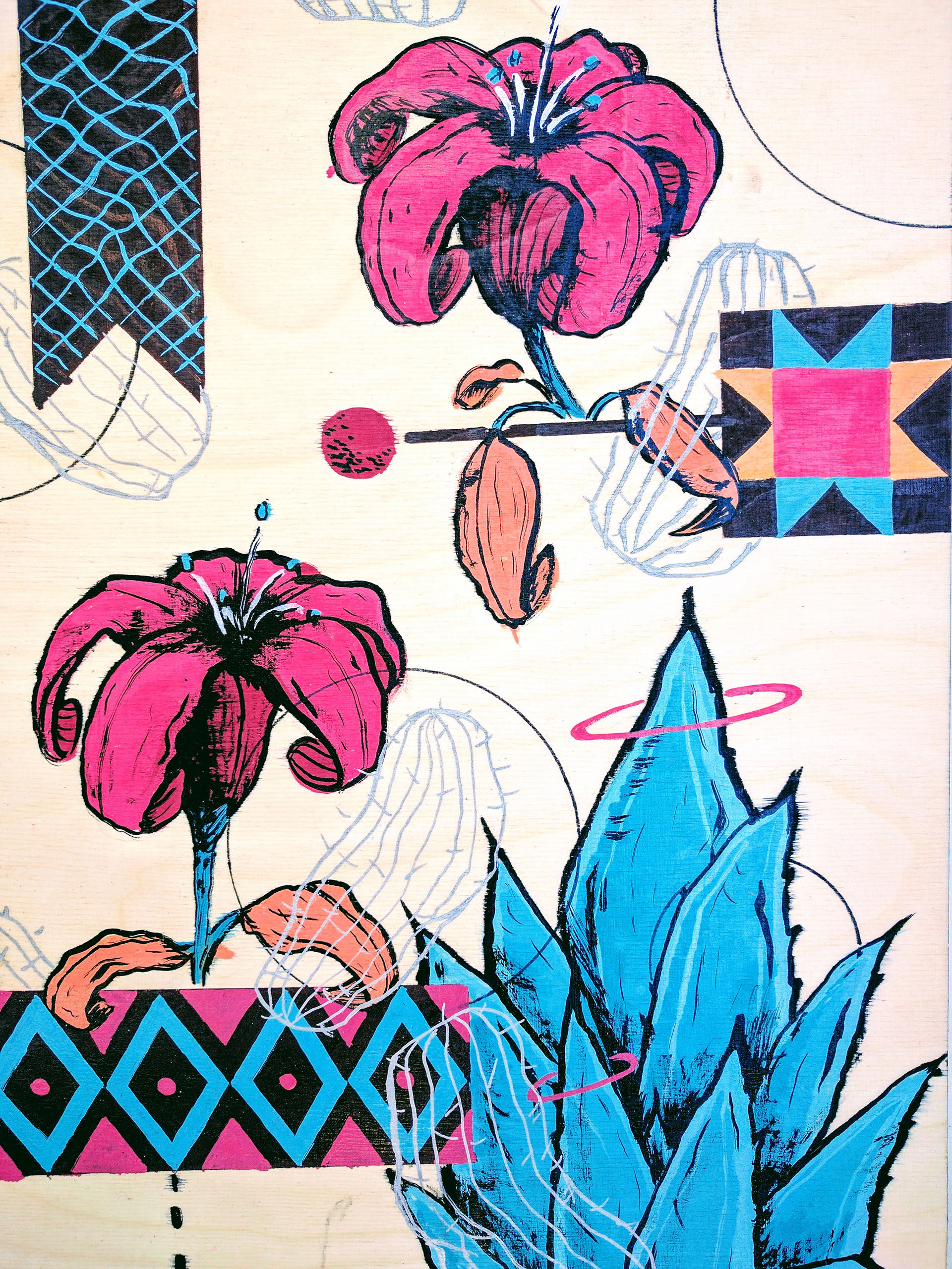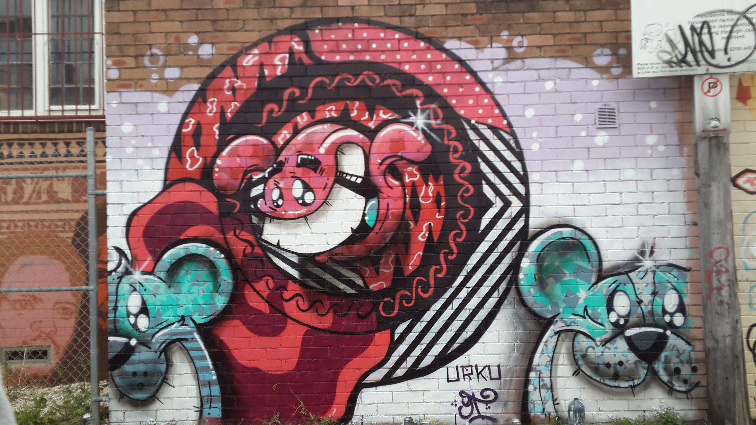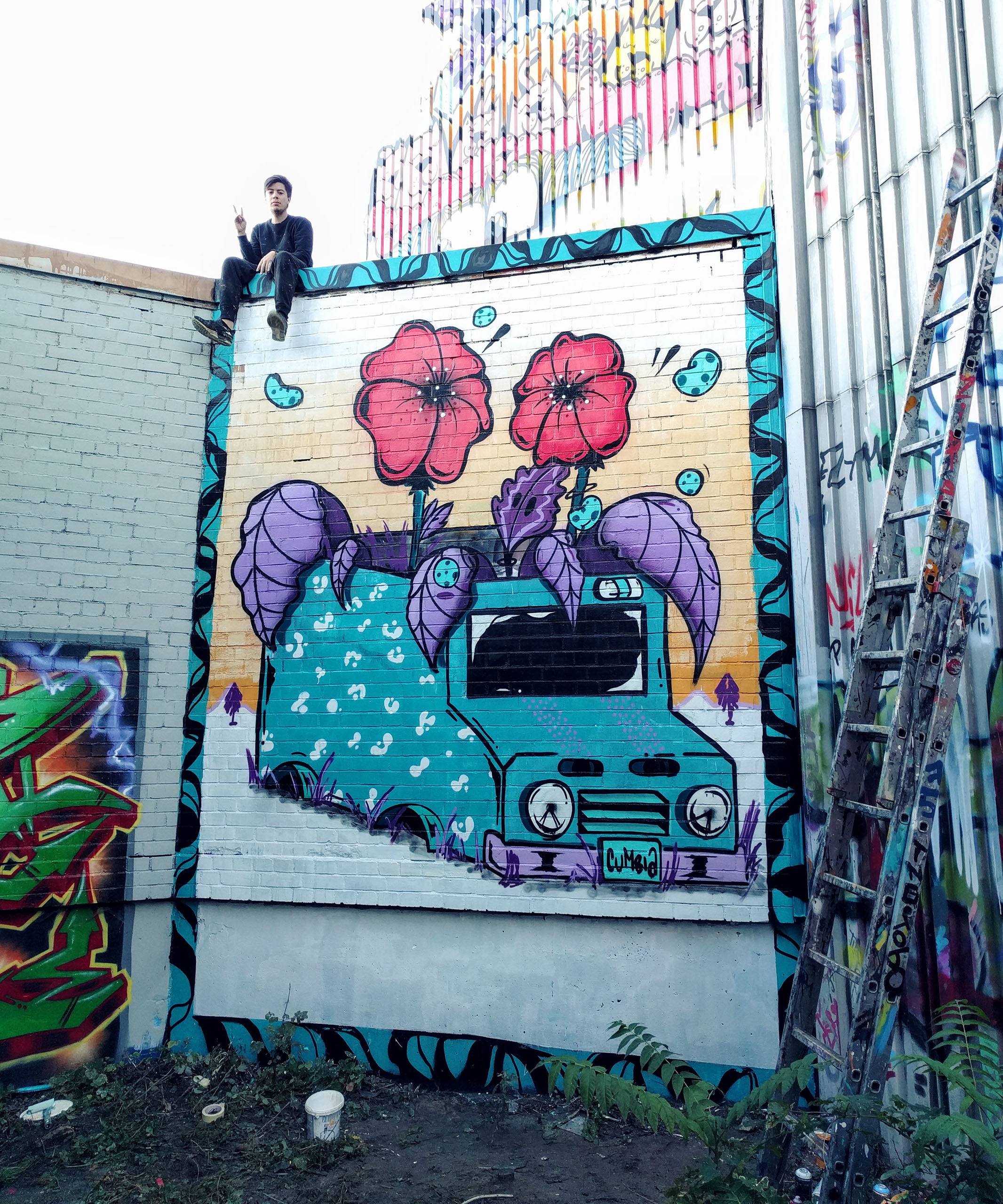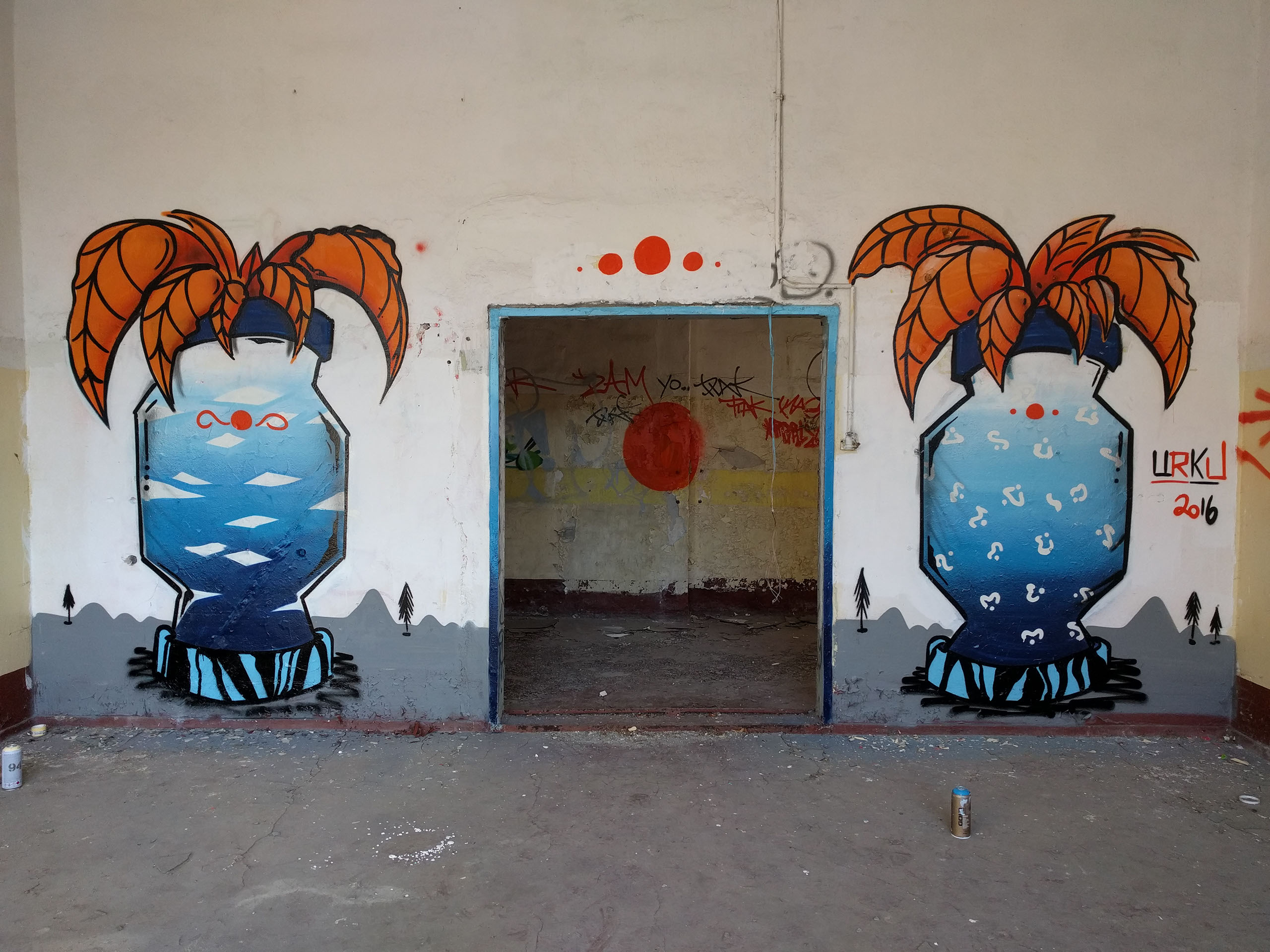 Urku was born and raised in Quito, Ecuador, spent 4 years in Australia, and is currently based in Berlin. He started with stencils and tags in the streets of Quito when he was 16. At the age of 21 he started involving himself much more in graffiti and painting in the streets. His murals and paintings can be described best as an explosion of color, humor and balance. After living in Quito, Brisbane, Sydney and Berlin, his work aims to create the idea of a multicultural mix that promotes a happy equality.